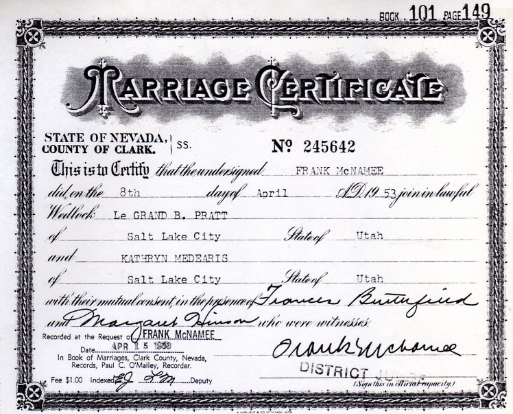 | | _7_ __LeGrand B (Lee) Pratt______| d.11Nov1946 SLC UT! 1846-1908 |_2 |_4__| | b.11Aug1910 SLC UT! | |_8_ | m. 8Apr1953 Las Vegas NV! | _Julius Billeter_