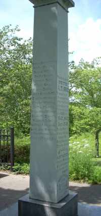With persecutions mounting, the entire family, including extended relatives, soon departed their homes bound for Nauvoo, Illinois with at great desire to gather with the Saints there. Rebecca and her children were not allowed to settle in Nauvoo however; as they arrived just as mobs were forcing the poor Saints and those desperately unprepared for traveling, out of their homes! Rebecca, Thomas Jefferson Jr., and some of her other family crossed the Mississippi River and were in the company of Saints who were fed by flocks of quail-a miracle which saved many of them from starvation. Rebecca and her family traveled on to Mount Pisgah, Iowa with Thomas Jefferson Jr. and his family. Not long after arriving many of the family became critically ill due to exposure and lack of essential food and shelter. Thomas Jefferson Jr.'s wife and two of his children died within a short time. Rebecca's hardships began to tell on her as well, and she too became terribly sick. She died 20 December 1846 and was buried in the Mount Pisgah Cemetery beside those loved ones. The illustration shows a monument at Mt. Pisgah with the names of those who died there, including Rebecca, her daughter-in-law, and two grandchildren.