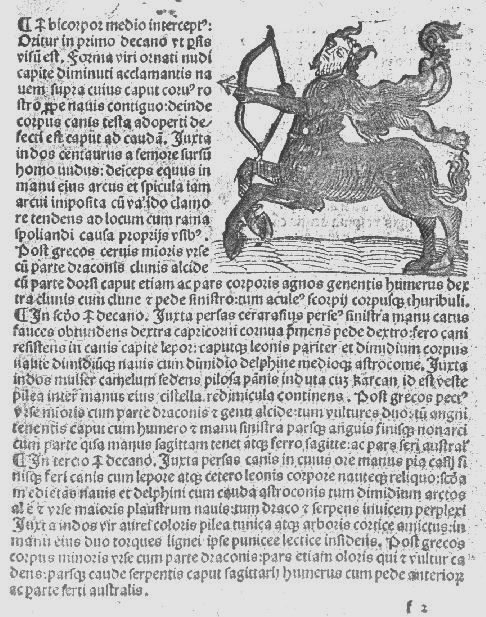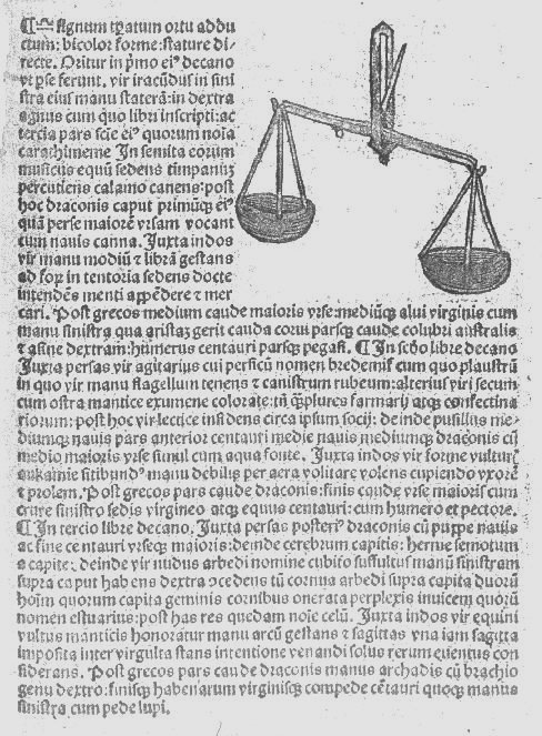 The ninth century astronomer Albumazar wrote a description of their 48 constellations arranged as 12 zodiac constellations, with each accompanied by three "decans". Because I know of no English translation of his Arabic work, I include here a photocopy of a Latin translation. It was made from the copy at the University of Utah.