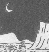The moon's orbit is only tipped 5 degrees from the suns, so for our purposes, let's approximate by saying it also follows the ecliptic circle like the sun. I'll give an example of how this affects the setting crescent moon, which is so commonly drawn. If the season is spring (March), then the ecliptic forms a 23 degree angle ABOVE the celestial equator. Hence the moon tends to be shaped like a "U." On the other hand, in September, the ecliptic is BELOW the equator, and hence the crescent looks like a "D." In summer and winter, it is in between. So presumably, B.C. in the above cartoon is in the summer because the crescent is neither D nor U.