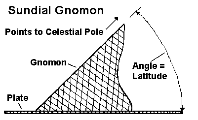 - The angle of a gnomon should be the same as the lattitude so that it points to the celestial pole.
