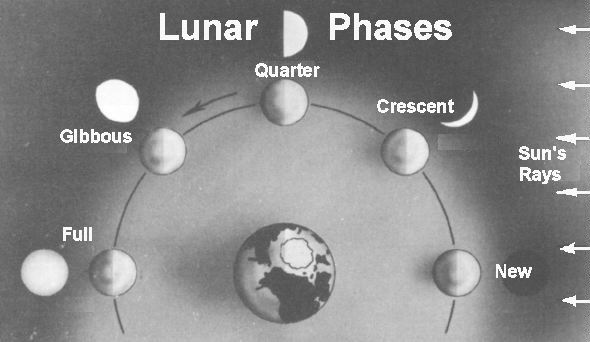 The moon's phases are caused because as the moon orbits the earth, we can only see part of the half of the moon that the sun lights up.