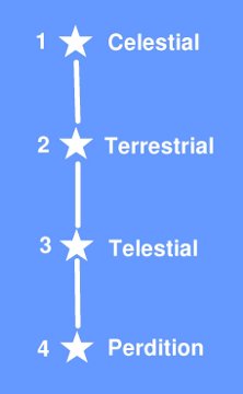 The seventh president also presides over all of the other six, which is the same as the pattern used for the seven presidents of the Seventy of the LDS Church (D&C 107:94). This latter presidency of four does not preside over different levels of spirituality, but rather over different physical aspects. These can be the physical areas where those presided over are located. It was proposed in that earlier article that in the case of the seven angels, the seventh angel, known as the archangel (D&C 88:112), presides over the entire earth. The first counselor presides over the eastern hemisphere and the second counselor over the western hemisphere.[2] The fourth member may preside over the translated city of Enoch and also functions as secretary for all seven. These duties of the general pattern are illustrated in Figure 1.