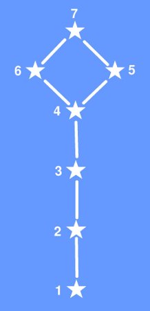 It was then discovered only this week that if one looks at a map of the entire sky, there are seven constellations which themselves are in the kite shape proposed for the Priesthood Pattern of Seven. The name "super constellation" was coined to described a sky figure formed by entire constellations rather than stars. In fact, this super constellation is almost exactly in the shape of the Little Bear, which is one of the most clearly indicated constellations of the group. That constellation is in the first position of the seven and it only contains exactly seven stars in the proposed shape.[3] Let us now look more closely at the great pattern which to me leaves no doubt about which are the correct seven constellations to consider.