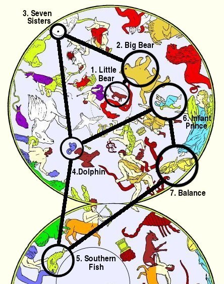 It is stunning that there are seven constellations which taken as a whole are in the kite pattern, with each having seven stars in that same pattern. Moreover, as we shall see, even the very positions in the entire map have deep symbolic meaning.