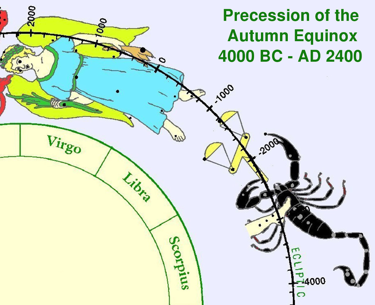 Even though the spring equinox is traditionally used for dating a star map, the autumm equinox could have been used just as well. Figure 7 shows the time scale for the precession of the autumn equinox.