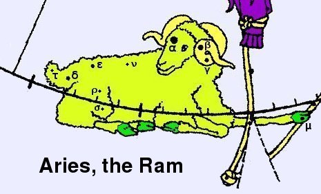 There are two more features of the star calendar which need to be understood. Because of what is called "precession" the star year varies slightly from our regular seasonal year. The effect is very slow. If the sun rises on the first day of spring in a certain constellation, such as the Ram (Aries), then after about 2,000 years it will rise in the next constellation counterclockwise from that in Figure 1, namely the Fishes (Pisces). The cause of the precession is discussed in an earlier article.[2]