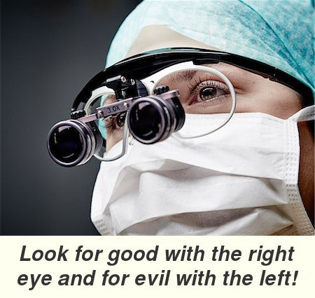 Here's the idea. Consider a balanced approach: Look for the good with your right eye and for the evil with your left eye!
