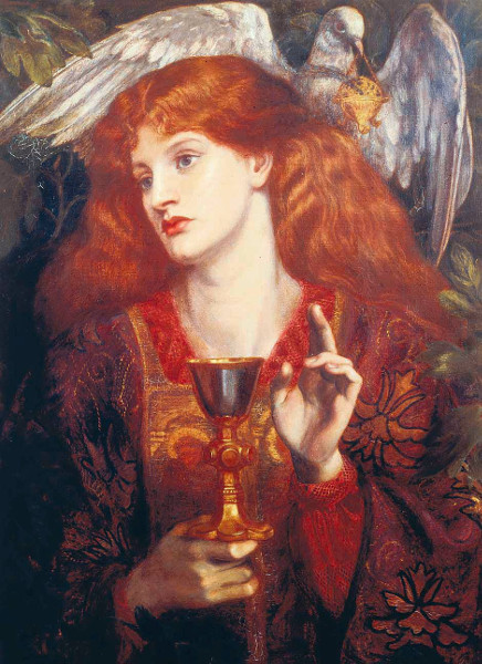 9. This is "The Damsel of the Holy Grail" by Dante Gabriel Rossetti (1874). Many have interpreted the legend of the Holy Grail, the chalice of Lord's Supper which Joseph of Arimathea supposedly used to capture some blood from the Savior on the cross, to symbolize Mary Magdalene as the sacred vessel preserving the bloodline of Jesus.