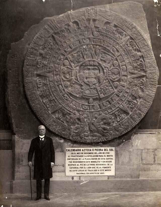 The legend is that a Toltec prophet caused this huge stone, 11 feet in diameter and more than two feet thick, weighing 24 tons, to be carved to track the cycles of time, mostly as a warning to the people. Many scholars have thought that stone was produced by the Aztecs in the year shown at the top (1479). They assumed that date was the date of construction as is often found on monuments.