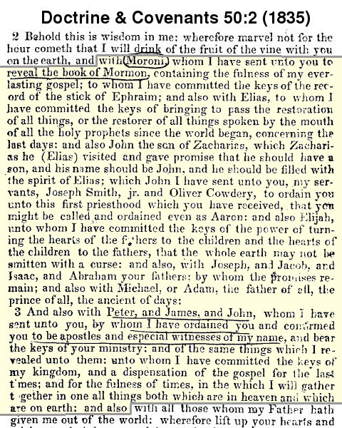 One complaint against the 1835 section just quoted from the 1835 Doctrine & Covenants (now D&C 27:5) is that it comes from a part of the revelation which was expanded from the original revelation by Oliver Cowdery, which to some suggests that it came from man and not from God. What if that conclusion is false and that it did indeed come from God?