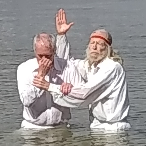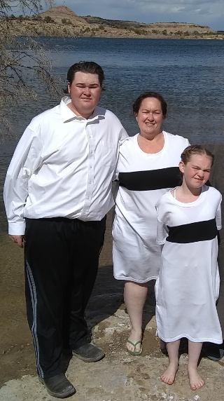 We then drove to Baptism Cove where the weather was mostly sunny and mild (60°F or 15°C), although somewhat windy. We rejoiced at such good weather! A tent was set up which Russell brought, which was used to change into dry clothes after being baptized. After an opening prayer, all eight candidates were baptized by me, with Jim helping raise them after immersion, in this order: Ed, Russell, Bobbi and her daughter Willow and son Wyatt, Kevin, Ed's wife Jeanne, and Jim. The water was colder than we had hoped (40°F or 5°C), but young Willow simply marched into it without any problem.