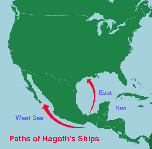 Then Hagoth consults with Shiblon to get the word of the Lord concerning them. Here we are explicitly told that many had gone by land, which we had to deduce from the Book of Mormon from the exceedingly large number who had left. The Lord tells Shiblon to send ships with provision by both the West and the East Sea, along with sets of scriptures (Hagoth 1:6).