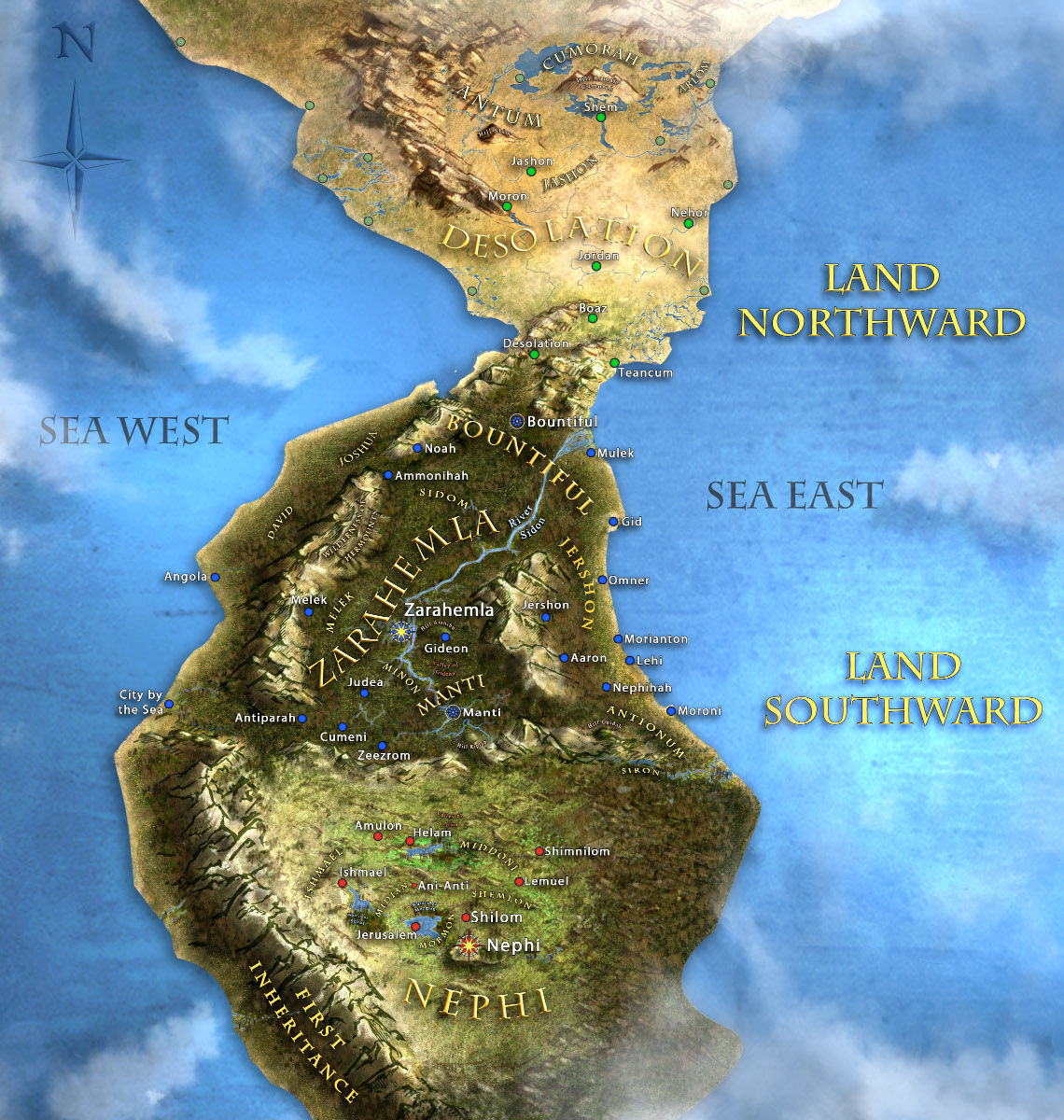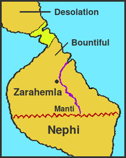 This narrow neck separates the Sea East from the Sea West in the area between the land Bountiful and the land Desolation, Bountiful being the northernmost of the Land Southward and Desolation being the southernmost of the Land Northward. Both Bountiful and Desolation stretch from sea to sea (v. 31-32).