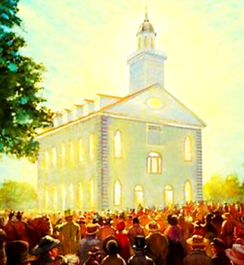 5 For verily this generation shall not all pass away until an house shall [command?] be built unto the Lord, and a cloud shall [prediction?] rest upon it, which cloud shall [prediction?] be even the glory of the Lord [a cloud of light, appearing like tongues of fire indeed appeared at the dedication of the Kirtland temple], which shall [prediction?] fill the house [angels and glory were also seen with the temple at the dedication]. — D&C 84:2-5
