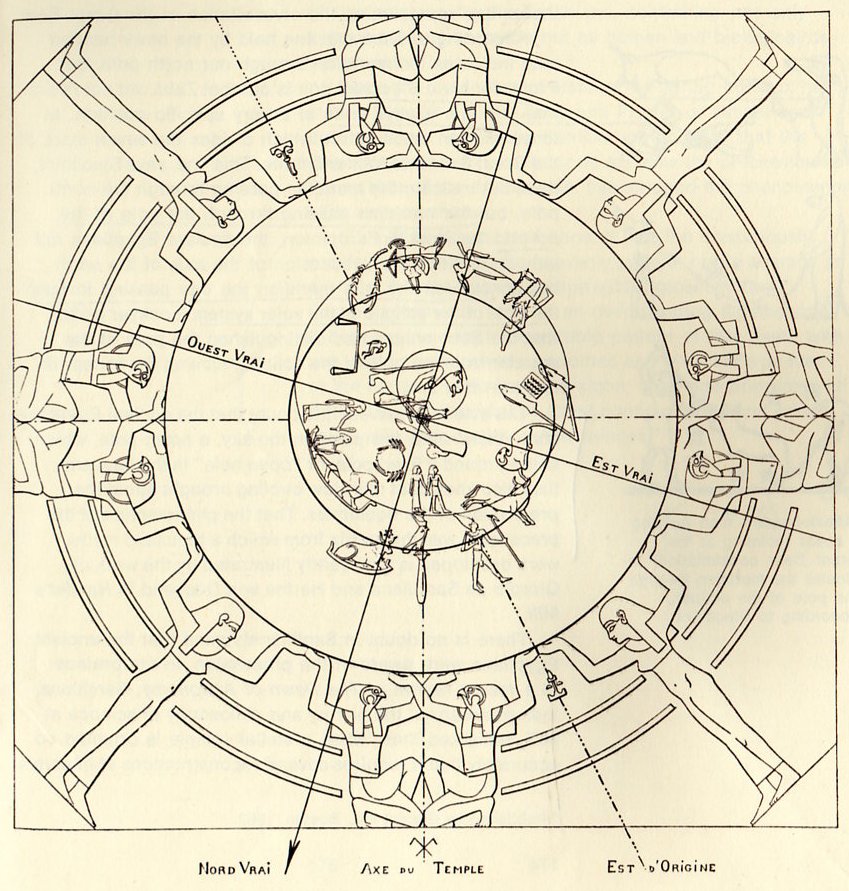 The intersection point of the ecliptic and celestial equator (in the Ram) rotates 1° in 72 years, allowing the Dendera planisphere to be dated.