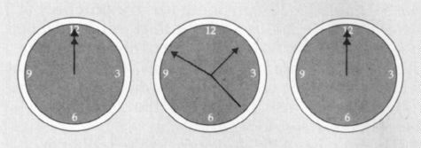 Because the circumference is an irrational number of days, as is the case with most astronomical periods, the two pointers never again point straight up exactly simultaneously. There are only approximate solutions; the longer one is willing to wait, the more accurately they will align.