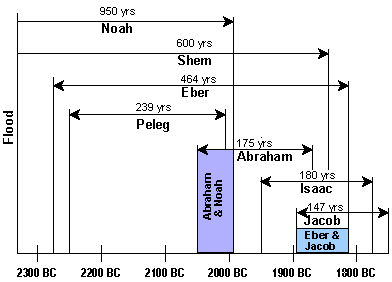Counting years from the Flood in 2343 BC, Noah died in about 1993 BC. Similarly, the two choices for Abraham are either that he was born about 2051 BC or about 1991 BC. Thus, if Abraham was born when Terah was 130, then Noah could not have known Abraham because Abraham would have been born two years after he died.