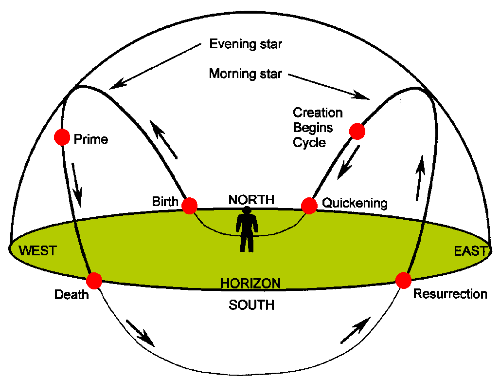 The Venus calendar tracks these phases of Venus. It is a cycle which averages 584 days in length, and has 8 "holy days," which are the first and last days of the phases of Creation, Birth, Prime, and Resurrection. The planet Mercury is also a morning and evening star and experiences the same phases and has the same 8 holy days in a 116-day cycle. Often it appears to be used as a second witness to the Venus calendar of the importance of a date.