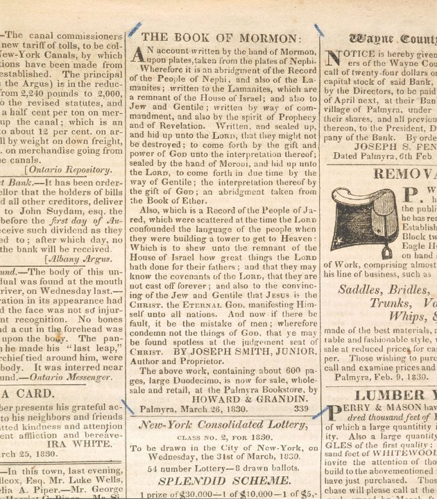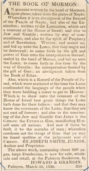 day, Fri 26 Mar 1830 the Wayne County Sentinel announced that the book was already on sale, and to me