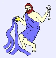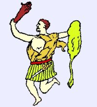 Perseus became obligated to obtain the head of the horrible Medusa, who had snakes for hair, and her face so ugly it turned any onlooker to stone. As he began his quest, he went to a sacred grove, where he was told that the gods would help him. Soon he met a messenger of the gods who gave him a hardened sword which could not be broken by Medusa's scales. It had been made by Hephaestus, the blacksmith god who worked underground. Then Athena appeared and gave him her polished brass breastplate, which he could use both as a shield and also as a mirror in which to look at the abominable Medusa indirectly, to avoid being immobilized. The messenger, who carried a winged staff, also unfolded a plan to obtain three more gifts he needed, which Perseus executed as follows.