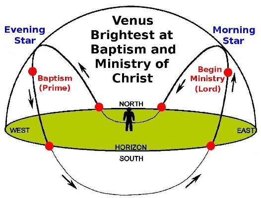 First, note that the two dates occur exactly six months apart. On the Enoch solar calendar, the Baptism was on 14 Autumn and the Ministry began on 14 Spring, exactly 182 days apart (half of 365). Those two days are the Feast of Tabernacles and the Feast of Passover on the Enoch calendar, as discussed in detail elsewhere.[10] Both days were also Saturday, the holy day of the week at that time, so they are aligned with the weekly cycle. Both days occurred on day 13 of a trecena, so they were holy days on the Sacred Round. And on the Enoch Fixed calendar (different from the Enoch solar), the two days were also Tabernacles and Passover. So these two dates are amazing before we even consider the Venus calendar.