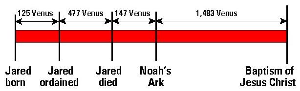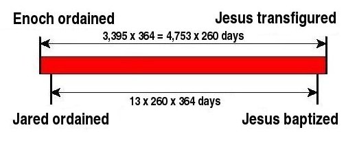 That was also the exact pattern relating the ordination date of his father Jared to the baptism of Christ. That is, it came out even on those two same calendars. Both the Savior's baptism and his transfiguration occurred on the Feast of Tabernacles on the Enoch Fixed Calendar, as did the ordinations of both Jared and Enoch. But the days on the Sacred Round matched both also.