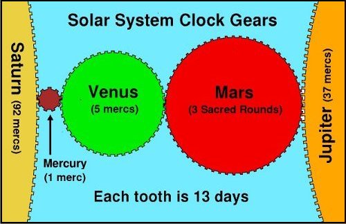 Fig. 1. Planetary periods are designed like precise interlocking gears in a huge clock, based on the merc and the Sacred Round.