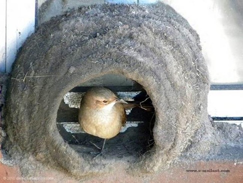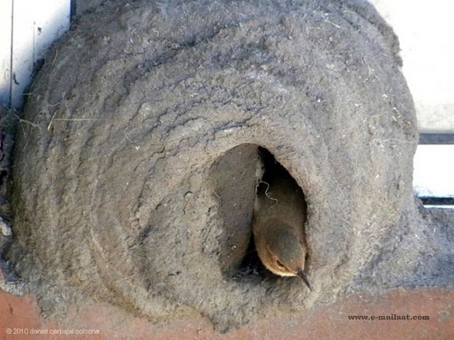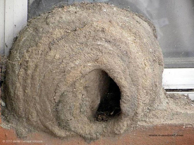 Structural engineer in action! Whether you’re a ‘bird person’ or not, this is stunning!!! Not to detract from the sheer magic of it, but in practical terms, how many trips would a bird have to make with that tiny little quantity of mud/clay it could carry? (and how far from the nest is the source?) If you take the construction of a “circular bowl” in your stride as instinctive – how the heck does the bird come up with the windbreak/entrance design that shields the eggs/chicks from the elements – and at what point in fashioning the bowl do they start to construct it?