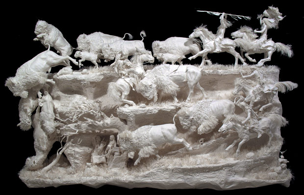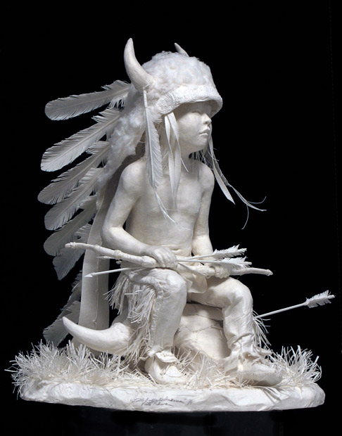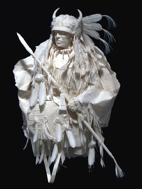 These stunningly detailed sculptures may only be made from paper - but they are being snapped up by art fans for tens of thousands of pounds. The intricate creations depict Native American scenes and took up to 11 months to make using a specially formulated paper.