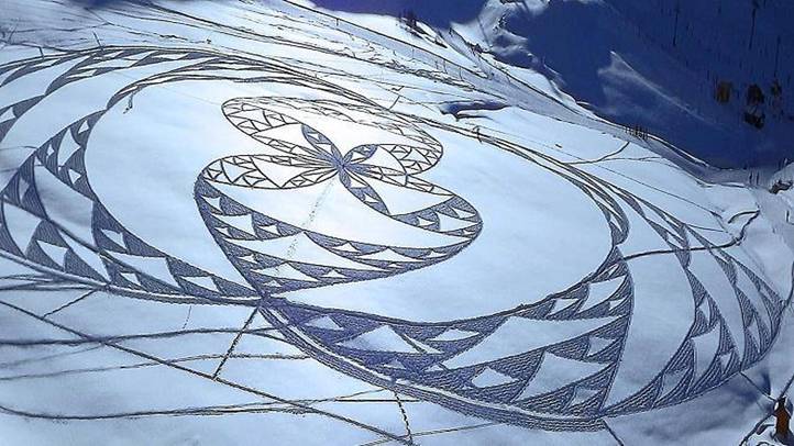 Man Walks All Day to Create Spectacular Snow Patterns.