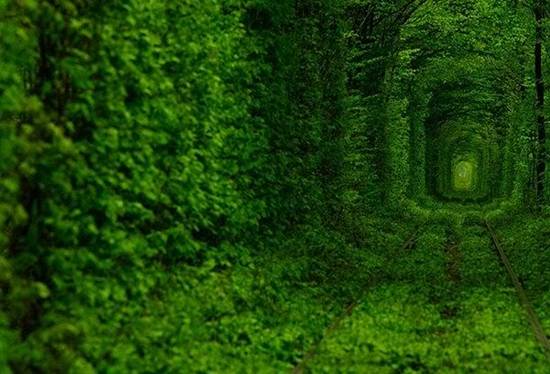 The Ukrainian Tunnel of Love is actually a two-mile sector of private railway that serves a woodworking plant near Klevan, a small city located in western Ukraine. I read somewhere that couples pass through this romantic tunnel to make a wish. The myth goes that, if their love is strong and pure, the wish will come true. May all of your wishes come true, but watch out for the train! It runs three times a day through the leafy tunnel.