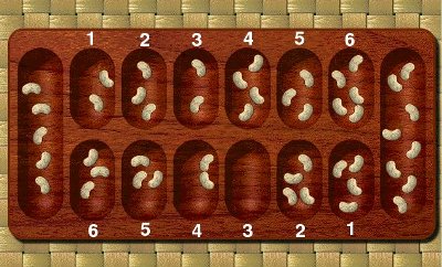 1. The game usually begins with four seeds in each pit. More can cause the game to drag on too long.