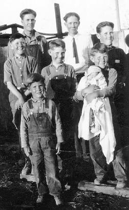 On the dairy farm in Pocatello, Idaho Back L-R: Calvin Jr., Emerson, Arthur, Center L-R: Ferryle, Winston, Adrian holding baby Velma, and David in the front.