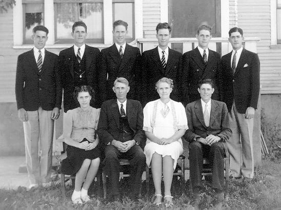 Back L-R: Arthur, Adrian, Emerson, Calvin, Winston, Ferryle. Front L-R: Velma, Father Calvin, Mother Achsah, and David.