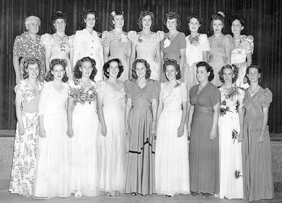 During the war in the 40's, Louise Tyler McOmber was part of this lovely group of singers. Louise said they gave sacrament meeting programs and toured Southern Idaho, performing for wards and special programs. They waited for their husbands and sweethearts and found companionship with each other while waiting for their men. L-R Back Sister Little, Afton Longhurst, Sylvia Clinkscales (Wilker), Lettie Raymond (Hale), Elda Foote Mattishaw, ?, Ethel Chilton Henderson, ? ,? . Front: Louise Tyler McOmber, Hazel Benson, ?, ?, Anna Henderson, Elma Exeter, Lola Wilker, Sister Egbert, and chorus director: Madge Little.