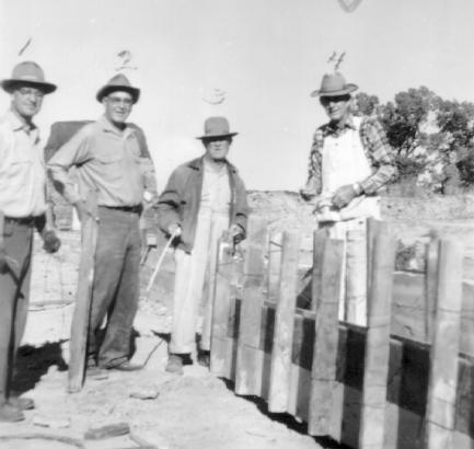 working on concrete forms for the cattle shed. He is wearing the plaid shirt on the far right.