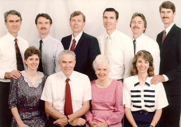 Back L-R: Douglas, Logan, Gail, Earl, Kent, Mark Front: L-R: Ann, Adrian & Grace, and Carol