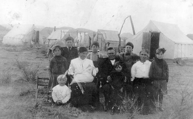 After the Exodus from Old Mexico and the Mexican Revolution, Edward Richardson homesteaded the "Four Corner's Ranch" and let Daisie and her family have it. L-R front: Justin, Daisie with baby Glenn, David F. Stout (her father), Eunice, Sadie (Aunt), Beulah, Back: Joyce, Lyman, David, and Abe Stout It was a very hard time for the young family for they suffered great deprivation and hunger. Later Daisie moved to Logan and was close of her parents who aided her. Many McOmbers stayed with Aunt Daisie while attending school at Utah State University, Logan Utah. Though Aunt Daisie was severely crippled with arthritis, she would iron shirts and take in laundry to help provide for herself. She was very unselfish and donated $50.00 to the Daughters of Utah Pioneer museum. This was a great selfless gift and sacrifice.