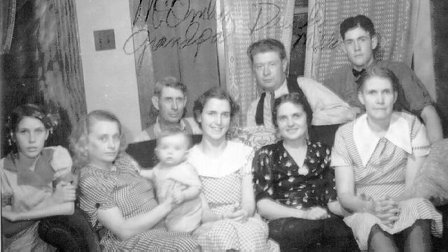 In the 1930's L-R: Velma, Olga Miller with child, ?, Frances, Achsah Back: L-R Calvin Sr, Elder Miller, and Ferryle
