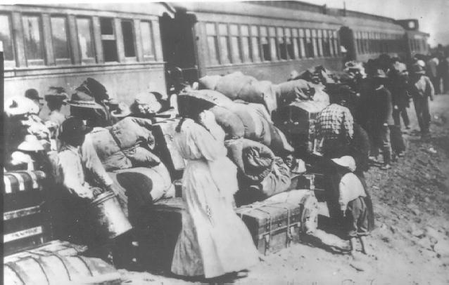 From the archives of BYU, we find this photo of the Mormon colonists hurrying to leave their home due to the threat of death. Many homes were left behind. Many were burned and desecrated by the bandits.