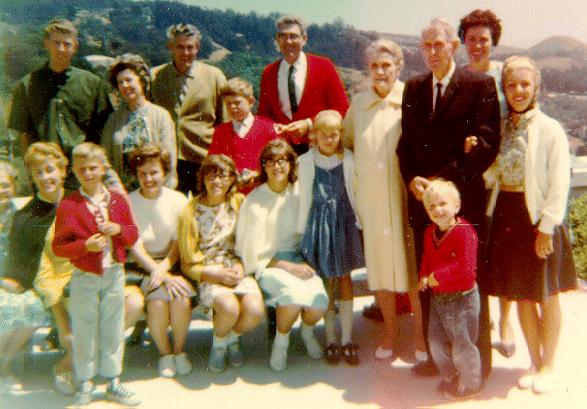 L-R: front: Aunt Frances, Aunt Rachel with Paul, Kaye, Julee, Marilyn, Becky, Grandma (Achsah and Calvin) Grandpa with Richard and Suzette Teerlink by them. Velma in the back Back L-R: Emerson Jr., Josie, Uncle David, Mark, and Uncle Adrian.