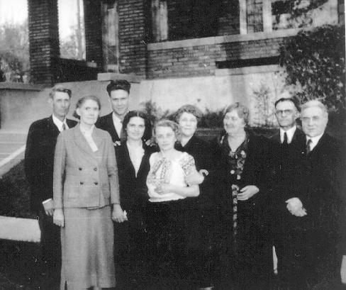They were honored to have the wedding breakfast at the Widtsoe home in Salt Lake City. L-R: Calvin & Achsah, Calvin Jr. & Frances, Olga Miller, Leah Widtsoe, and John A. Widtsoe (The other couple in the back may be the mission presidents, perhaps the Harts ?)