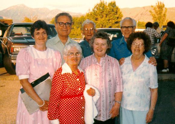L-R Ruth McOmber Pratt, Murray Richardson with his wife, Enos Heward with his wife, and Frances B. McOmber in front by Ruth. How wonderful to have a family reunion every year at the Bluffdale Lion's Park. It is remarkable to think that the family that began over a century and a half ago is still having a circle letter, has a family organization, and has strong love and ties to each other. Every July 7-9th there is a Stout reunion which usually starts out with a temple session, a dinner at a restaurant, followed the next day by a family pot luck supper and a program (usually Friday), and an organized and lovely time together. David Fisk Stout and his wives can rejoice for their family has blessed this earth with missionaries, bishops, temple workers, patriarchs, Relief Society presidents, Primary workers, Mutual directors, church workers, dancers, educators, musicians, servants of the community and the country, and great strong families. Their sacrifice has blessed our generation, even unto the 4th and 5th generations and on into eternity. We are thankful.