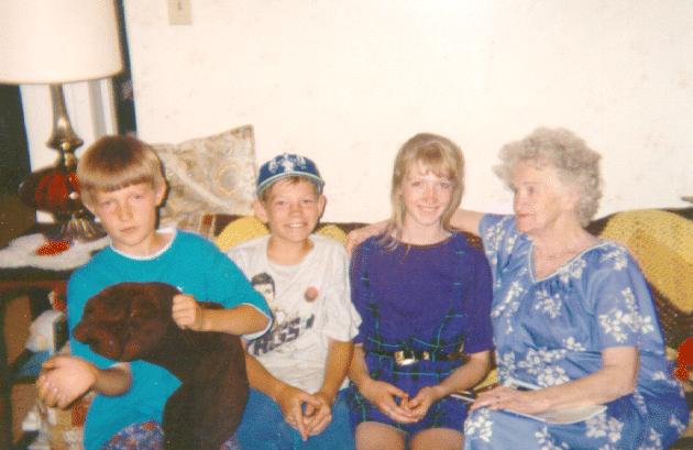L-R: Joseph, Jared, Mary, and Aunt Viola in the 90's. Aunt Viola housed many of the McOmber