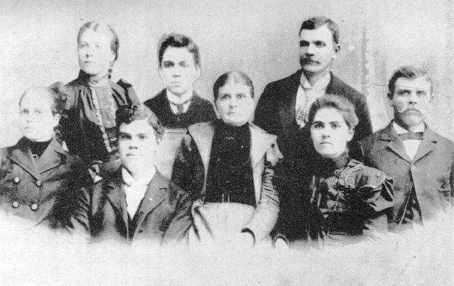 L-R: Mary E. Cox (Lee), Ruth Cox (Ferree), Jedediah, Marion Elizabeth Ann Stout (Cox), Warren, Louisa Cox (Jepson), and Henderson Elias Cox.