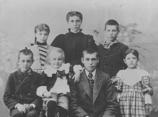 Sitting: L-R: Byron George, Lloyd Horace, Ernest Murwin, Flora Lovina Standing: Clara Lucinda, Edith Eliza, Howard Elmer