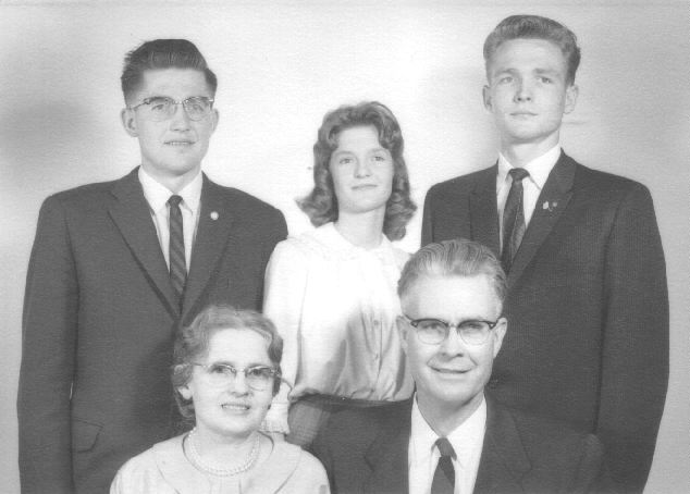 1960 family picture with George, Ruth, and Calvin (l-r) with parents Calvin & Frances (front).