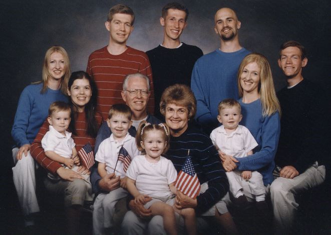 L-R Standing: Mary Pratt, John C. Pratt, Joseph Pratt, son-in-law Ivan Hepworth, L-R Sitting: John's wife Lisa holding their younger son Ivan on lap, Ruth's husband John P. Pratt, holding John and Lisa's older son Calvin, Ruth holding her daughter Julie's daughter Kaylee, Julie (I'van' wife) holding their son Jayden, and Jared McOmber Pratt.